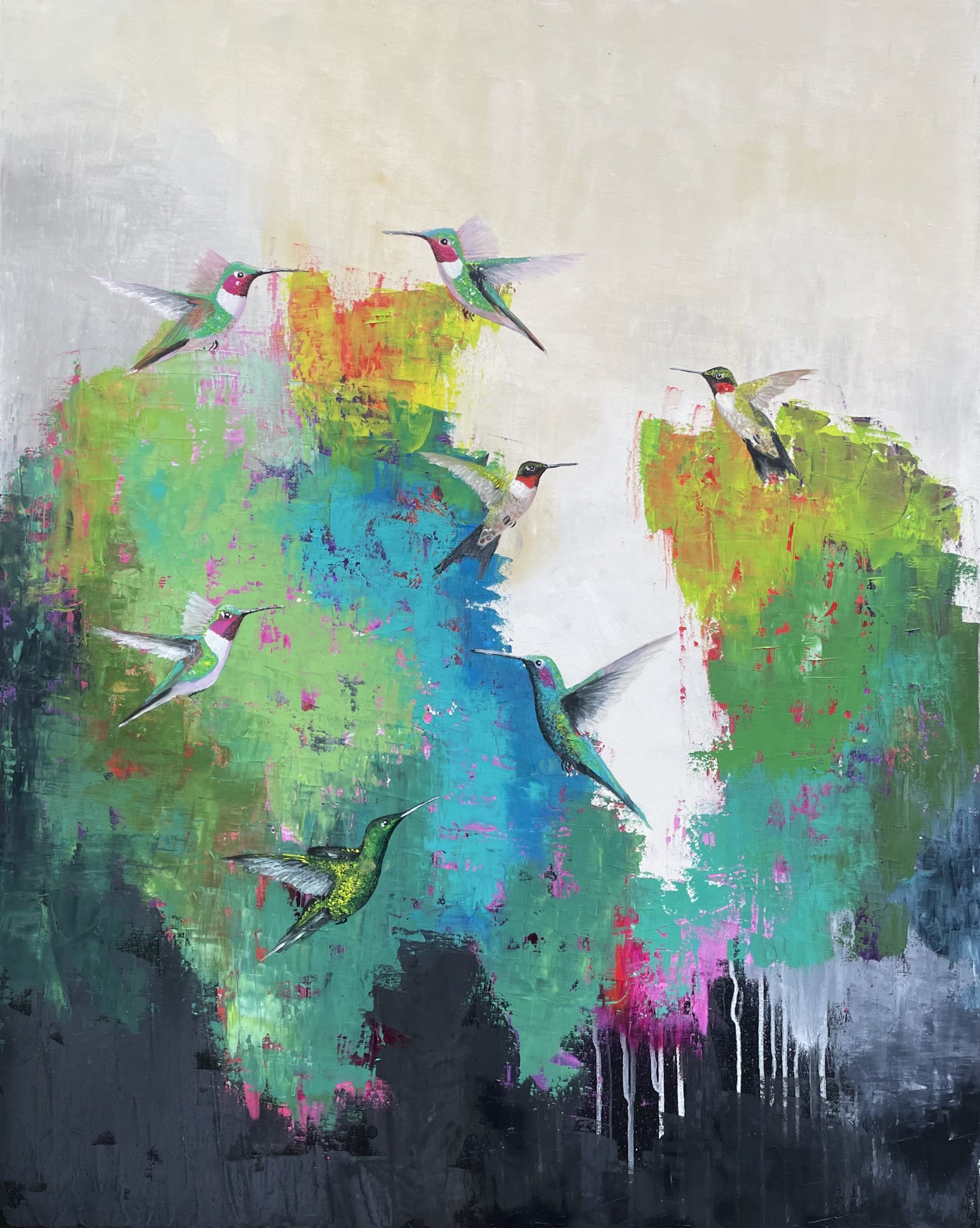 I was invited to Guadeloupe in the French Caribbean where the sea is oh so beautiful. We visited botanical gardens full of extraordinary vegetation and beautiful hummingbirds.This trip has inspired a new series of paintings, of which this is the second.